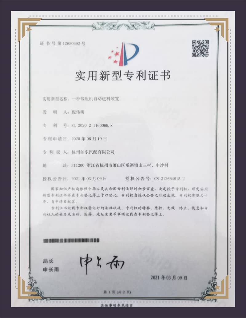 Utility Model Patent Certificate